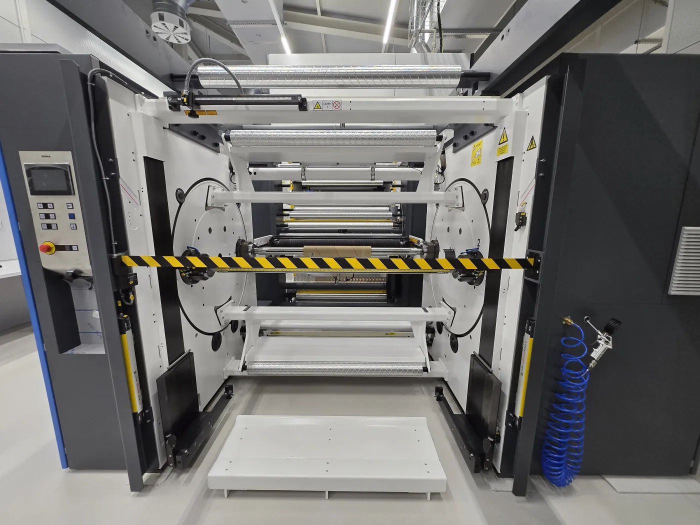 Unsere Druckmaschine ist mit 8 Farbwerken ausgestattet, die eine große Farbpalette, feine Übergänge und eine hohe Druckqualität gewährleisten. Der gesamte Prozess läuft mit einer Spitzengeschwindigkeit von bis zu 500 Metern pro Minute ab, was eine schnelle und effiziente Produktion auch großer Serien ermöglicht.